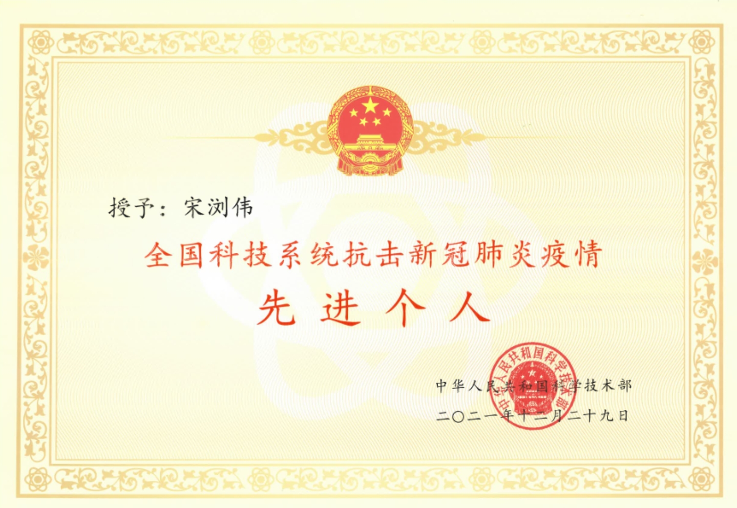 宋瀏偉,中共黨員,安徽六安市舒城縣人。2004年畢業(yè)于舒城中學(xué),同年考入廈門大學(xué),系廈門大學(xué)2015屆本碩博連讀研究生,廈門萬(wàn)泰凱瑞生物技術(shù)有限公司研發(fā)總監(jiān)。2022年獲全國(guó)科技系統(tǒng)抗擊新冠肺炎疫情先進(jìn)個(gè)人表彰。